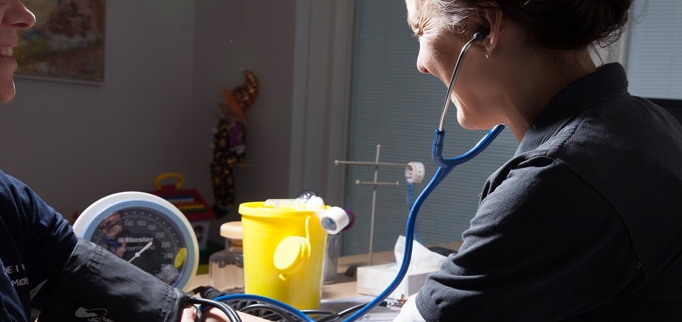 Under “Selvbetjening” Du kan bestille tid til konsultation, samt kommunikere med lægen og forny recepter.